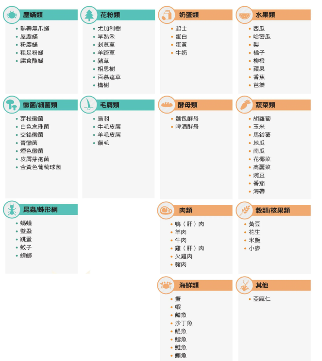 最常見的過敏原可分為 環境型 與 食物型: