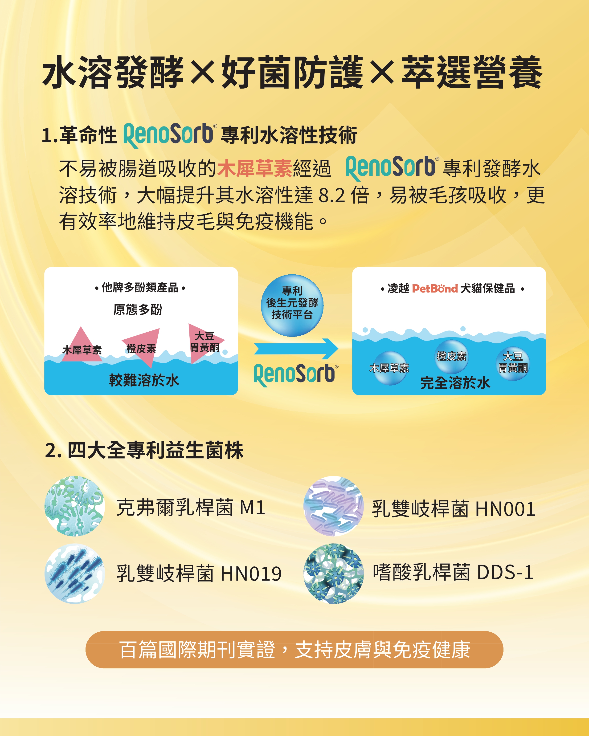PetBond 犬貓好皮毛|專利RenoSorb® 多酚配方